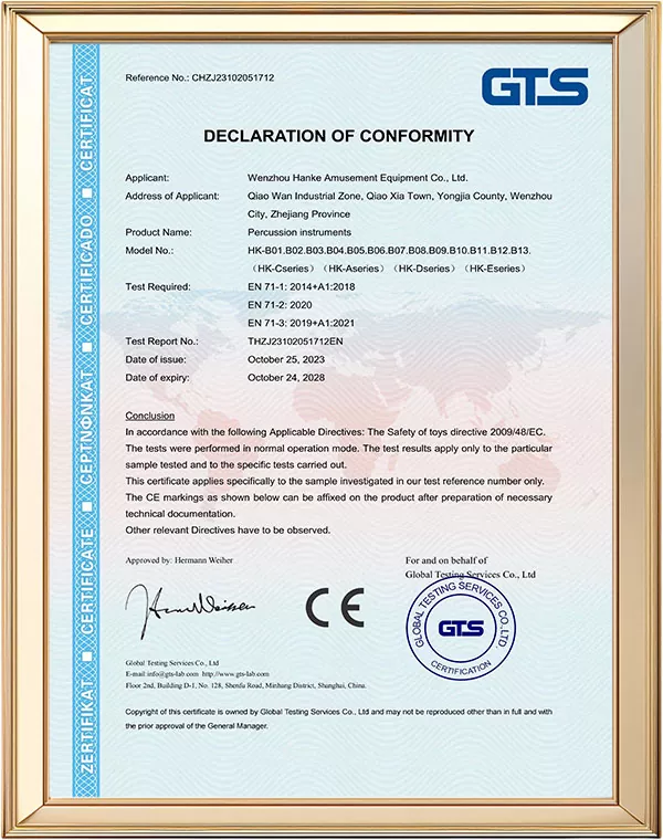 1Nagsasagawa kami ng advanced na pananaliksik sa larangan ng panlabas na percussion instrumento sa paggawa. Upang mapagbuti ang kalidad at antas ng serbisyo, nakumpleto ng aming mga tauhan ang pagsasanay sa kalidad ng kontrol at itinatag ang isang nakalaang departamento ng inspeksyon.